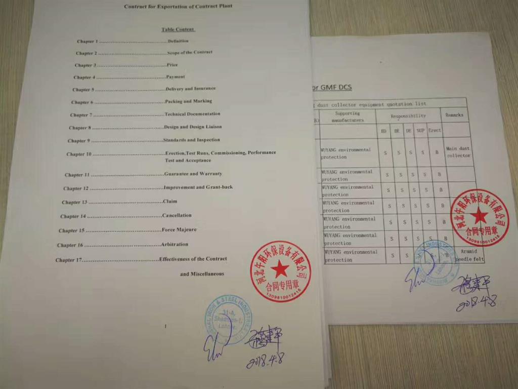 午陽(yáng)環(huán)保跟迪拜鋼廠簽訂除塵器維修改造合同