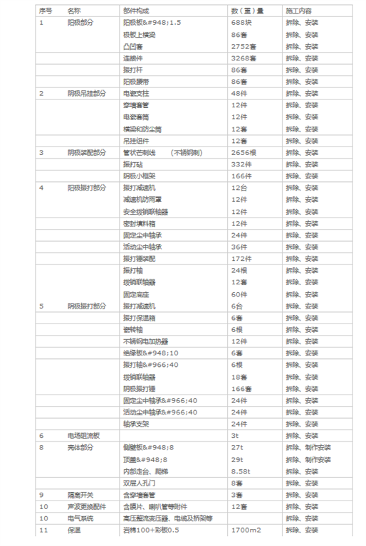 2、除塵工程安裝包括:除塵器本體、高低壓電源及其控制系統(tǒng)的安裝,系統(tǒng)相關設備和裝置的安裝,風管和電、氣、水管線的連接;除塵系統(tǒng)保溫﹑防腐和防雨等。施工單位應制定安裝技術方案。