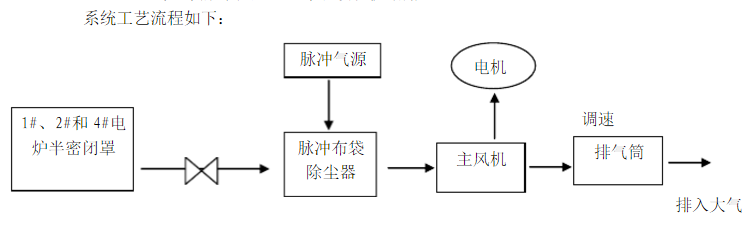 電爐采用各自的半密閉罩進(jìn)行煙氣捕集,捕集后的煙氣經(jīng)過各自的風(fēng)管及風(fēng)量調(diào)節(jié)閥后匯入總管,并引入一臺LMC脈沖布袋除塵器中凈化,凈化后的氣體通過引風(fēng)機送入排氣筒再排入大氣。