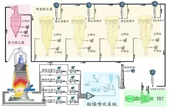 測試所有這些可能泄漏的方法是使用粉塵濃度檢測儀(環(huán)瑞科技)。以煉鐵高爐生產中煤氣的回收利用及余壓發(fā)電(TRT)為例,荒煤氣在經(jīng)過重力除塵和降溫后,進入布袋除塵器做精細除塵,凈煤氣從各除塵器的凈氣室經(jīng)支管匯入煤氣總管,進入下_余壓發(fā)電、熱風爐、儲存罐。