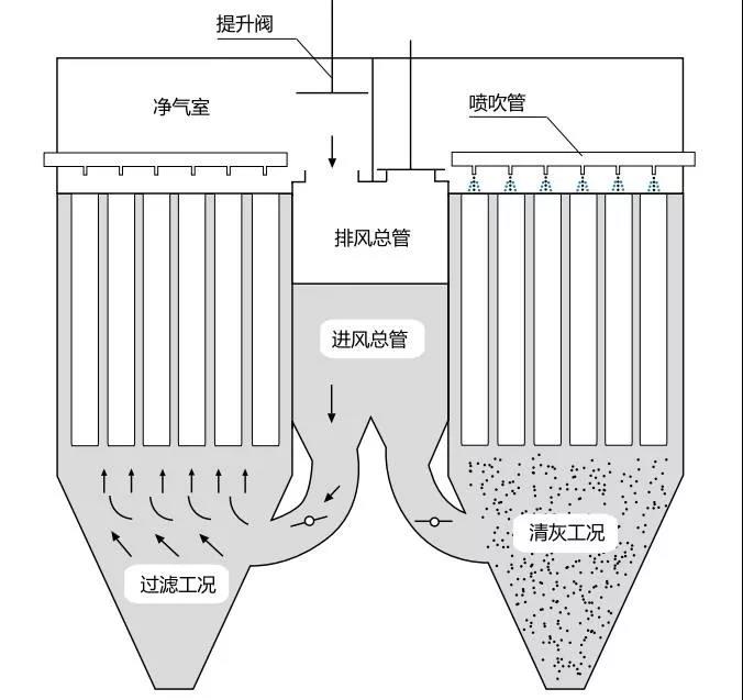 這種清灰方法運(yùn)動(dòng)部件很少,金屬構(gòu)件的維護(hù)工作少。但是,脈沖控制系統(tǒng)很容易結(jié)露、堵塞、動(dòng)作不靈敏,需要_注意維護(hù)。