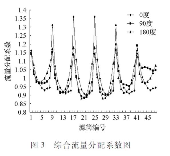 該系數(shù)越小,說(shuō)明流量分布越均勻,對(duì)濾筒除塵器整體設(shè)計(jì)越好。