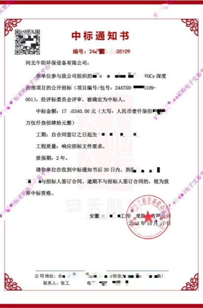金秋十月收獲累累河北午陽環(huán)保焦化廠VOCs廢氣治理中標(biāo)